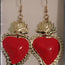 Orecchini Capresi Ex Voto Cuore Sacro Metallo Dorato smaltato rosso. Gancio a monachella aperta in metallo dorato. Lunghezza orecchino cm.6 Prodotto artigianale realizzato a Capri.